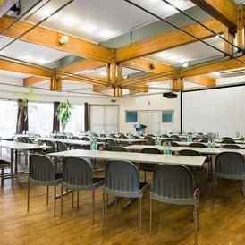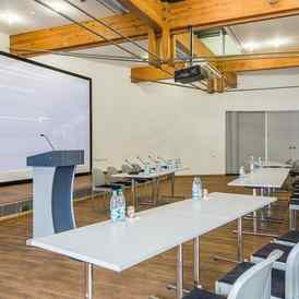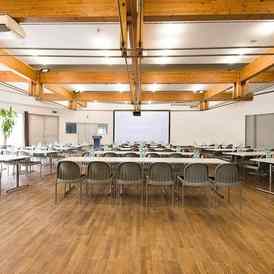 Конференц-центр отличается лаконичным стилем, простором, минимумом отвлекающих деталей, хорошей технической базой.
